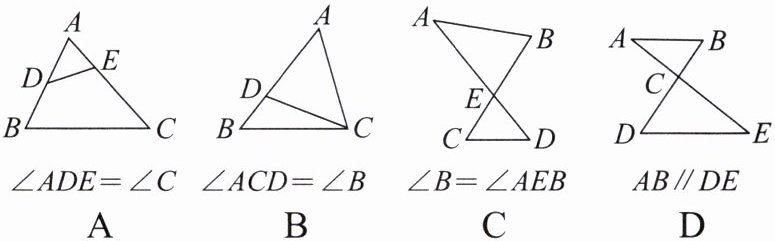 1. 结合图形所给的条件,下列图形中无相似三角形的是( ).