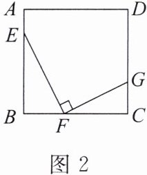例 如图 2,在正方形 ABCD 中,点 E,F,G 分别在 AB,BC,CD 上,且$∠EFG= 90^{\circ}$.求证:$△EBF\backsim△FCG$.