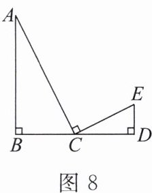 3. 如图 8,已知$AB⊥BD$,$ED⊥CD$,C 是线段 BD 的中点,且$AC⊥CE$,$ED= 1$,$BD= 4$,则 AB 的长为____.
