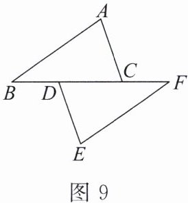4. 如图 9,点 B,D,C,F 在同一直线上,且$AB// EF$,$AC// DE$.求证:$△ABC\backsim△EFD$.