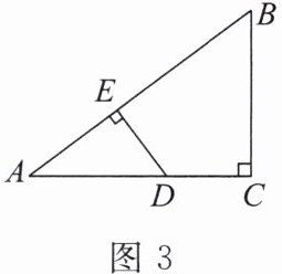 1. 如图 3,在$△ABC$中,$∠C= 90^{\circ}$,D 是 AC 上一点,$DE⊥AB$于点 E.若$AC= 8$,$BC= 6$,$DE= 3$,则 AE 的长为( ).