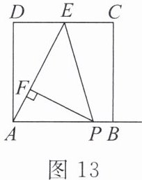 8. 如图 13,正方形 ABCD 的边长为 2,E 是 CD 的中点,点 P 在射线 AB 上,过点 P 作线段 AE 的垂线,垂足为点 F.