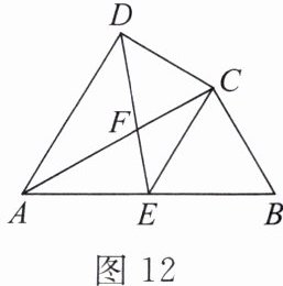 7. 如图 12,在四边形 ABCD 中,AC 平分$∠DAB$,$∠ADC= ∠ACB= 90^{\circ}$,E 为 AB 的中点,连接 DE 交 AC 于点 F.