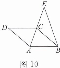 5. 如图 10,四边形 ABCD 为菱形,点 E 在 AC 的延长线上,$∠ACD= ∠ABE$.