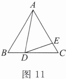 4. 如图11,在等边三角形ABC中,D为BC边上一点,E为AC边上一点,且AB= 6,BD= 2. 当CE的长为______时,△ABD∽△DCE.