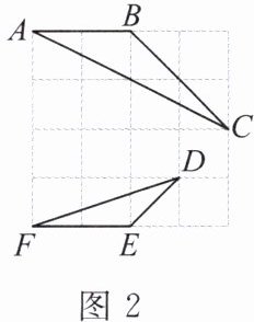 例 如图2,方格纸中每个小正方形的边长均为1,$\triangle ABC和\triangle DEF$的顶点都在格点上. 请判断$\triangle ABC和\triangle DEF$是否相似,并说明理由.