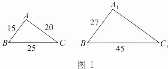 2. 如图1,当$A_{1}C_{1}$的长为______时,$\triangle ABC \backsim \triangle A_{1}B_{1}C_{1}$.