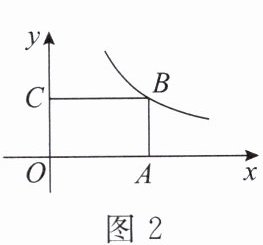 2. 如图 2,已知矩形 $ OABC $ 的面积为 $ 6 $,且反比例函数 $ y = \frac{k}{x} $ 的图象经过点 $ B $,则 $ k $ 的值为______。