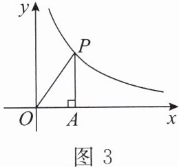 3. 如图 3,$ P $ 是反比例函数 $ y = \frac{2}{x} $ 的图象上的一点,$ PA \perp x $ 轴于点 $ A $,则 $ \triangle POA $ 的面积为______。