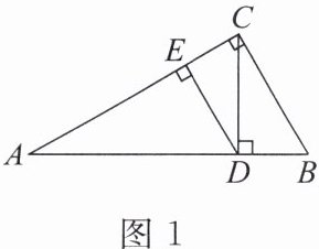 (2)如图1,在$\mathrm{Rt} \triangle ABC$中,$\angle ACB = 90^{\circ}$,$CD \perp AB$,垂足为点$D$,$DE \perp AC$,垂足为点$E$.已知$CD = 2\sqrt{3}$,$AB = 8$,$AC = 4\sqrt{3}$.求$DE$的长.