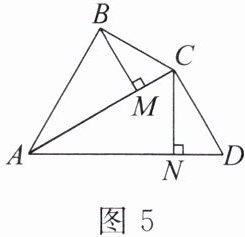 5. 如图5,在四边形$ABCD$中,$AC平分\angle BAD$,$\angle ABC = \angle ACD$,$BM \perp AC于点M$,$CN \perp AD于点N$,且$BC = 12$,$BM = 8$,$CD = 15$.求$CN$的长.