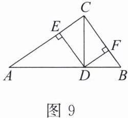 8. 如图9,已知在$\triangle ABC$中,$\angle ACB = 90^{\circ}$,$AC = 8$,$BC = 6$,$CD是AB$边上的高,$DE \perp AC$,$DF \perp BC$,垂足分别为点$E$,$F$.