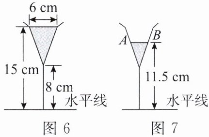 6. 图6是装了液体的高脚杯的示意图,用去一部分液体后如图7,此时液面$AB$的宽度为______$\mathrm{cm}$.