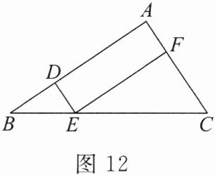 8. 如图 12,在△ABC 中,点 D,E,F 分别在边 AB,BC,AC 上,DE//AC,EF//AB.