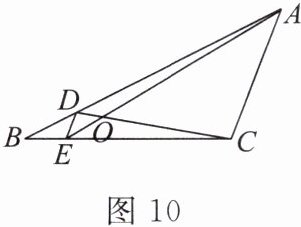 6. 如图 10,D,E 分别是△ABC 的边 AB,BC 上的点,且 DE//AC,AE 与 CD 相交于点 O.若$\frac{S_{△DOE}}{S_{△COA}}= \frac{1}{25}$,则$\frac{S_{△BDE}}{S_{△CDE}}$值为______.