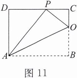 7. 如图 11,已知矩形 ABCD 的边 AD 长为 8,将矩形 ABCD 折叠,使顶点 B 落在 CD 边上的点 P 处,折痕为 AO.