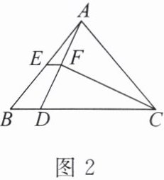 如图 2,在 $ \triangle ABC $中, $ BC > AC $,点 $ D $在 $ BC $边上,且 $ DC = AC $, $ \angle ACB $的平分线 $ CF $交 $ AD $于点 $ F $, $ E $是 $ AB $的中点,连接 $ EF $,四边形 $ BDFE $的面积为 6。求 $ \triangle ABD $的面积。