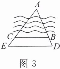 3. 如图3,在河两岸有两个村庄,分别用点A,B表示,现测得点A,B,D在一条直线上,点A,C,E在一条直线上,BC//DE,DE= 90m,BC= 70m,BD= 20m,则A,B两村间的距离为______m。