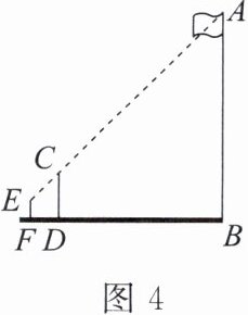 例 如图4,九年级(3)班课外活动小组利用标杆测量学校旗杆的高度。已知标杆高度CD= 3.5m,标杆与旗杆的水平距离BD= 14m,人的眼睛距地面的高度EF= 1.5m,人与标杆的水平距离FD= 2m。求旗杆AB的高度。
