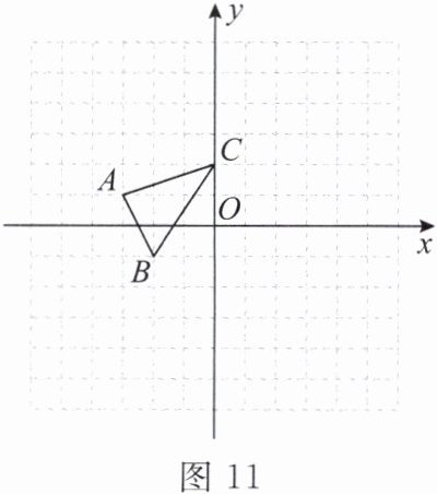 4. 如图 11,在平面直角坐标系中,$ \triangle ABC $ 的顶点为 $ A(-3,1) $,$ B(-2, -1) $,$ C(0,2) $。请以原点 $ O $ 为位似中心,位似比为 $ -2 $,画 $ \triangle ABC $ 的位似图形 $ \triangle A_1B_1C_1 $,并写出对应点 $ A_1 $,$ B_1 $,$ C_1 $ 的坐标。