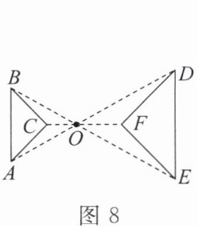 1. 如图 8,已知 $ \triangle ABC $ 与 $ \triangle DEF $ 是位似图形,相似比为 $ \frac{2}{3} $,$ AB = 4 $,则 $ DE $ 的长为( )。