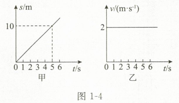 3. (多选)如图1-4所示,图甲是小车甲运动的$s-t$图像,图乙是小车乙运动的$v-t$图像。由图像可知( )