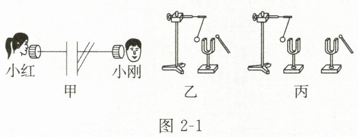 (3)如图2 - 1乙所示,用竖直悬挂的乒乓球接触发声的音叉时,乒乓球被弹起,这个现象说明了______。