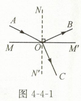 (2) 如图4-4-1所示,MM'是空气和水的分界线,NN'是____线,AO是____线,∠AON是____角,OC是____线,∠CON'是____角。
