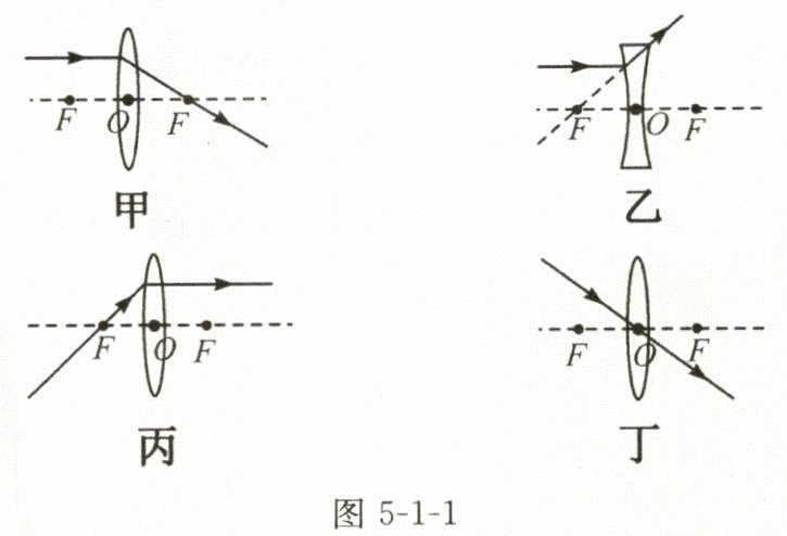 (3)经过____的光线,经凸透镜后传播方向不改变,如图5-1-1丁所示。