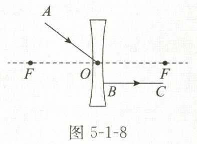 8. 在图5-1-8中画出通过凹透镜的折射光线和入射光线。