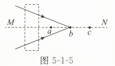 5. 如图5-1-5所示,光线会聚于b点,在虚线区域内放甲透镜后,光线会聚于主光轴MN上的c点;在虚线区域内换放乙透镜后,光线会聚于主光轴MN上的a点。则( )