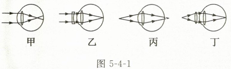 例 现代生活,智能手机给人们带来了许多便利,但长时间盯着手机屏幕,容易导致视力下降。图 5 - 4 - 1 中与近视眼及其矫正的原理图对应的是( )