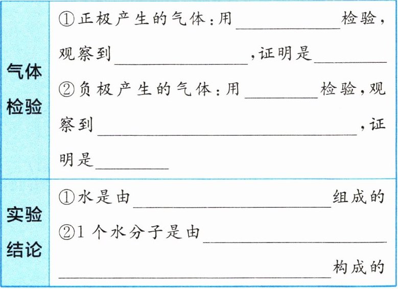 ②负极产生的气体:用______检验,观察到______,证明是______|