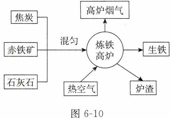 6. 图 6 - 10 是工业炼铁的流程图,请据图回答下列问题。