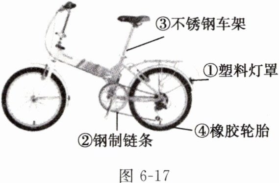 6.(社会热点)共享单车作为代步工具,既轻便灵活,又符合“低碳出行”的理念。图6-17是一款共享单车的图片,请回答下列问题。