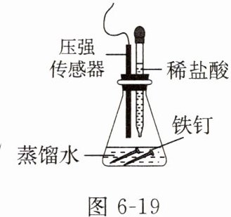 (5)为进一步探究铁钉锈蚀过程中气态物质的变化,该小组的同学利用图6-19所示装置完成以下实验:恒温下,向锥形瓶中加入少量稀盐酸,同时测量锥形瓶内气体压强随时间的变化,直至反应完全。