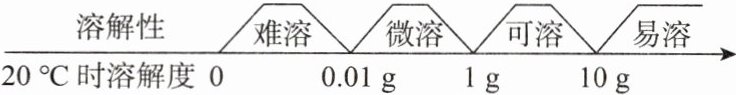 2. 根据固体物质在______℃时的溶解度大小,人们把物质在水中的溶解能力(又称______)分为四个等级,其中难溶物质习惯上叫作“不溶”物质,即“不溶”是相对的。