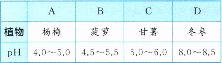 7. 下表为四种植物适宜生长的 pH 范围,不适宜种植在酸性土壤中的植物是( )。