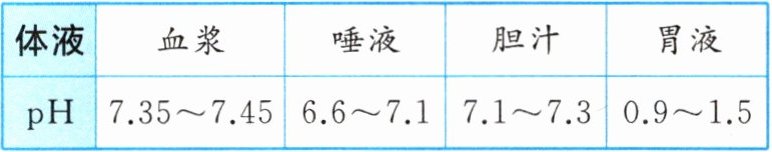 | 体液 | 血浆 | 唾液 | 胆汁 | 胃液 |
