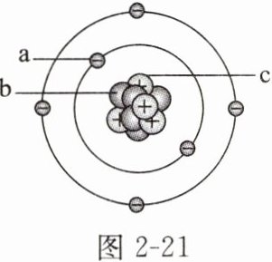 4. 图2 - 21为某原子结构模型的示意图,其中a、b、c分别表示构成该原子的三种不同的微观粒子,下列说法正确的是( )。