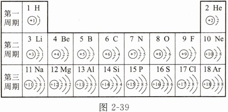 9. 元素周期表是学习和研究化学的重要工具,其内容十分丰富。图 2 - 39 是依据元素周期表画出的 1 ~ 18 号元素的原子结构示意图,请你一同探究。
