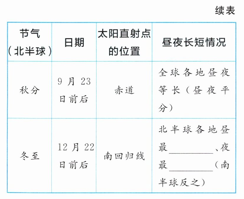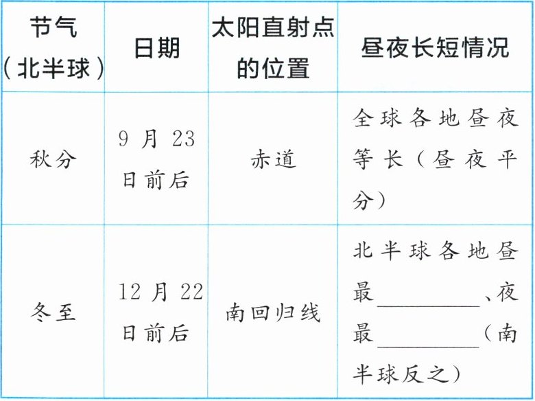 1.保持不变 太阳 季节 2.夏至 冬至 春分 秋分 3.相反