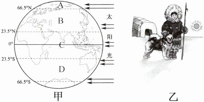 6.C 7.B[提示:乙图中,太阳直射$23.5^{\circ }S$(南回归线),日期为12月22日前后]