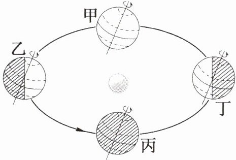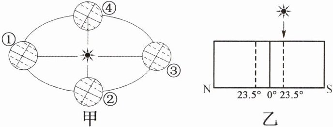 6. 当太阳光照如乙图情景时,地球处在甲图中的位置是(