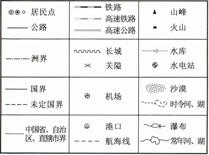 的说明,分别表示一定的地理事物。(2)一些常用的图例:
