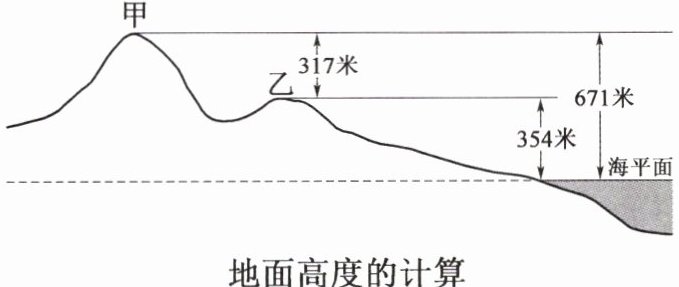 距离。如左栏图所示,甲、乙两地的相对高度是317
