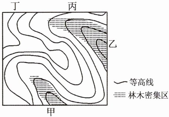 下图示意某地的林木分布情况,图中相邻等高线的高差均为 30 米。读图,完成 6—7 题。