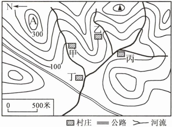(3)甲、乙、丙、丁四个村庄中,推测交通条件最好的是