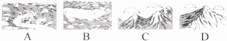 9. 下列素描图中,能表示甲地所在地形部位的是(