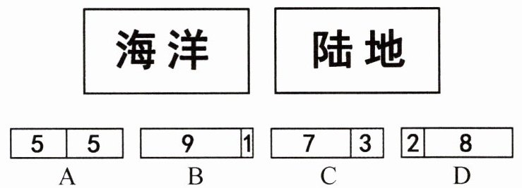 2. (黑龙江哈尔滨中考)下图示意地球表面海洋与陆地的面积对比情况,其中正确的是(